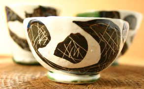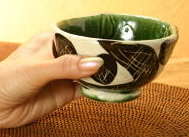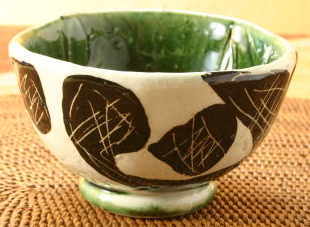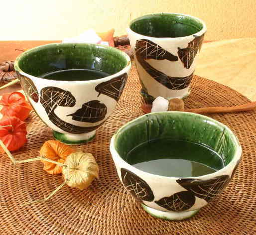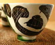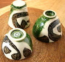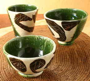 織部鉄絵掻落玉湯呑