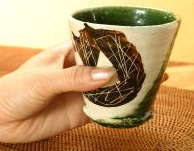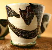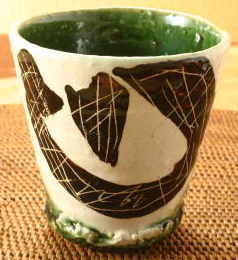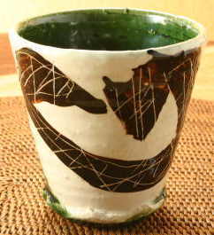 織部鉄絵掻落筒湯呑 |
